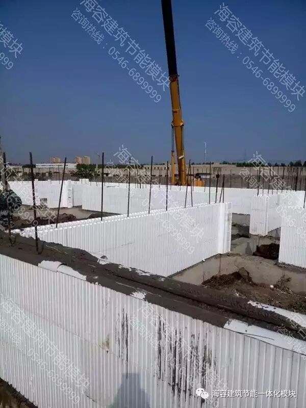 用海容模块建房子,施工就像插积木一样简单,放上钢筋,灌上混凝土砂浆,一次成型,省去了传统支模板、拆模板的过程和使用模板的费用,独有的技术体系实现了房屋的整体密闭,封堵了冷热桥,避免了传统建筑存在的结露、长毛、开裂、空鼓、脱落的质量缺陷现象发生,主体结构得到较好保护,建筑物使用寿命长久,是目前建筑市场上最具推广价值的建筑节能一体化墙体材料。
